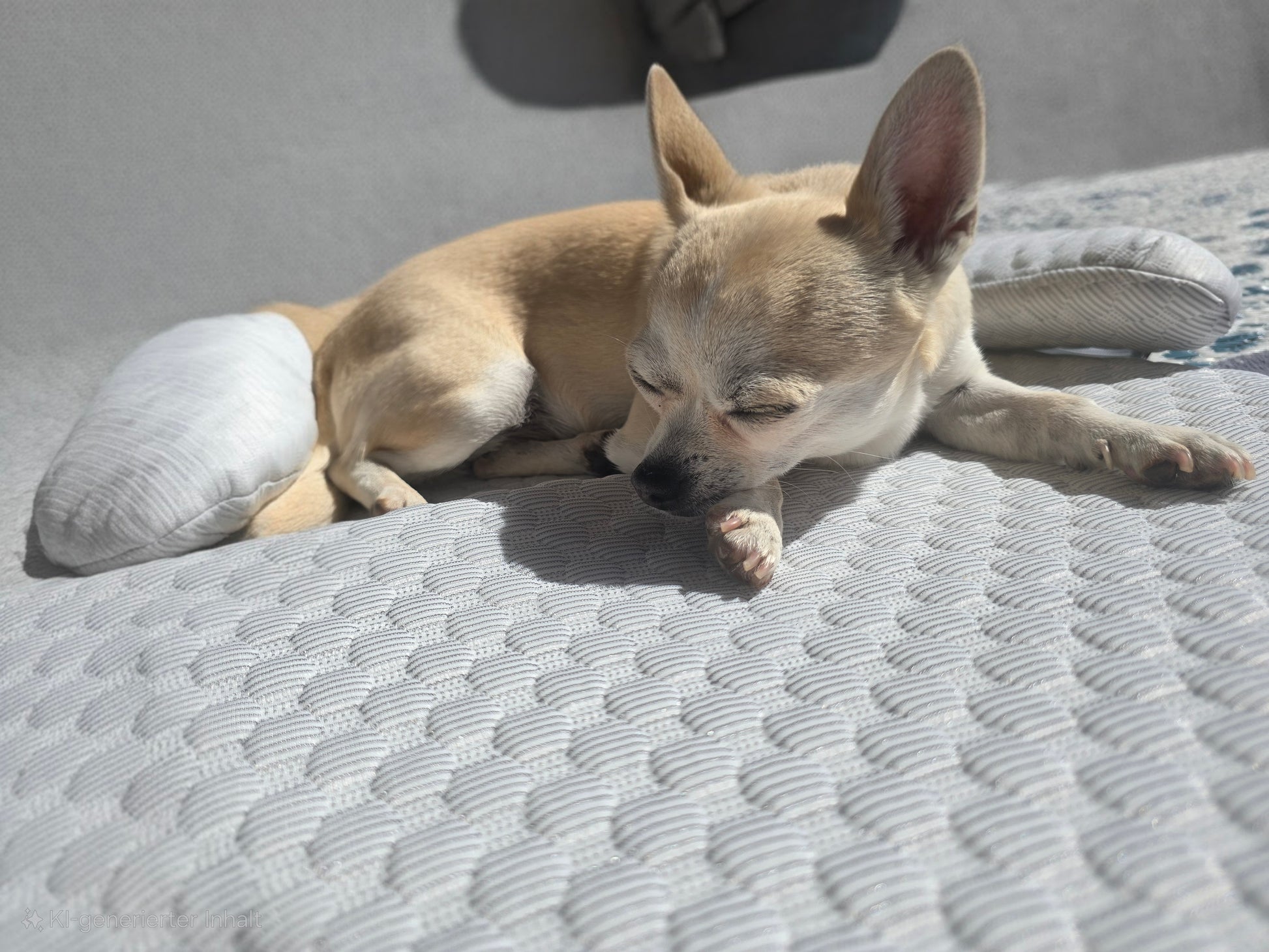 Haben ihr jetzt wieder ihre Decke hingelegt und siehe da: sofort gemütlich hingelegt und tief geschlafen.