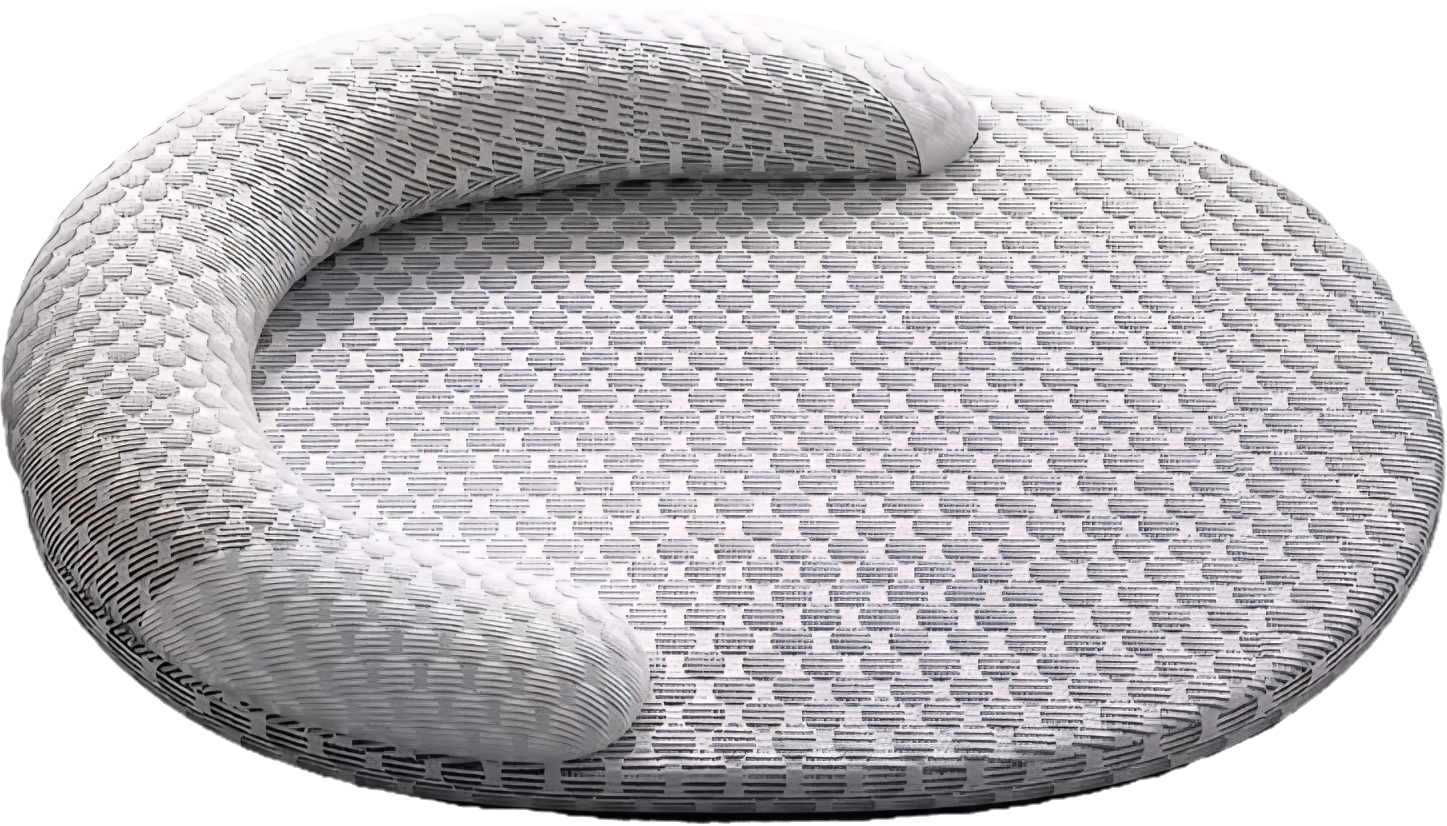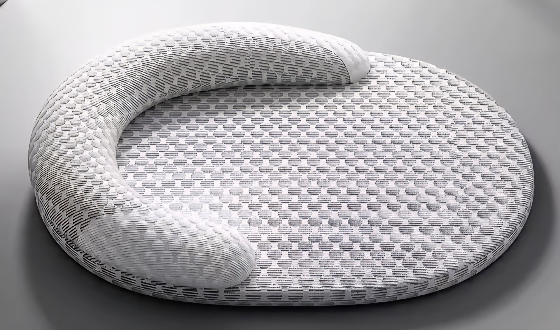 Ein verlängertes, U-förmiges Kissen, dient als bequeme Nacken- und Kopfstütze.